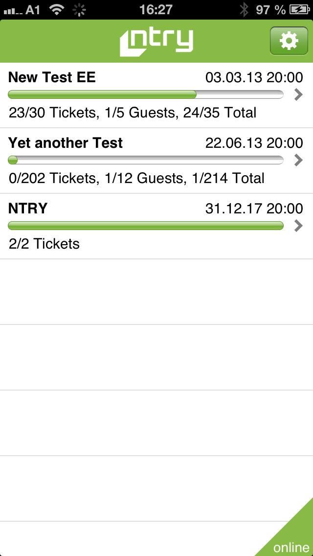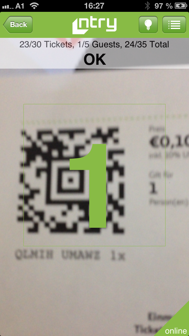 Mit der ntry-App kannst du kinderleicht Ticketcodes scannen und die Vorverkaufs- und Anwesenheitsstatistik deiner Events in Echtzeit im Überblick behalten.